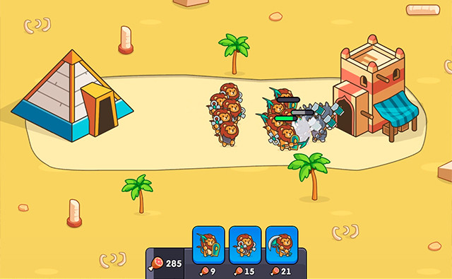 Battle for Evolution invites you to command armies of adorable animals in epic strategic battles to conquer island territories. This innovative strategy game blends the cuteness of wild creatures with the tactical depth of a true military challenge. You lead your troops of felines, bears, and other creatures through different biomes, each home to unique species you can recruit to strengthen your army. Food is generated automatically to feed your fighters, and you must use this resource wisely to summon the right units at the right time. The further you advance in your island conquest, the more formidable your enemies become, forcing you to collect powerful artifact cards that grant permanent bonuses to your forces and your empire. Strategy and adaptation are essential to triumph against increasingly tough opponents. Enjoy!