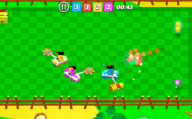 Car Battles 1-4 Players is a vibrant collection of automotive action games where strategy and reflexes intertwine in various challenges. You can engage in battles with rotating weapons, score goals in a wacky football mode, take the lead in high-speed races, or survive increasingly difficult levels. Whether you prefer quick matches lasting a few minutes or tournaments spanning multiple rounds, the experience remains captivating. Play alone or with up to 4 players simultaneously, with friends or against bots! Customize your vehicle’s appearance by changing cars, faces, or colors using the crystals collected during your matches. Each mode features simple yet distinct controls, displayed before each round to guide you. Do not forget to collect the keys earned after each victory to unlock even more exciting game modes. Enjoy!