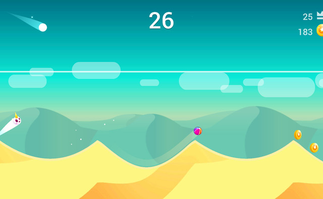 Gliding over Dunes places you in control of a ball that slides and soars above a landscape of rolling dunes, and your mission is simple: go as far as possible without crashing. Each dune becomes a natural springboard if you know how to gauge your momentum. You accelerate the ball up the incline, then release it at the right moment so it launches high into the air. The more majestic your takeoff, the higher your score climbs, but beware: a too violent landing on the sand is the immediate end of your run. While airborne, you can deliberately dive to steer the ball toward the next descent, allowing you to regain speed and chain jumps. The secret lies in the constant balancing of accumulated speed, timing of the takeoff, and dive angle, as each dune presents itself differently and forces you to adapt your rhythm. A run can start slowly, progress smoothly, then turn into a frantic sprint where the slightest mistiming costs you everything. It is even possible to slow down deliberately to regain control if the pressure becomes too high. The controls are immediate, but mastering the perfect trajectory requires flair and perseverance. Enjoy!