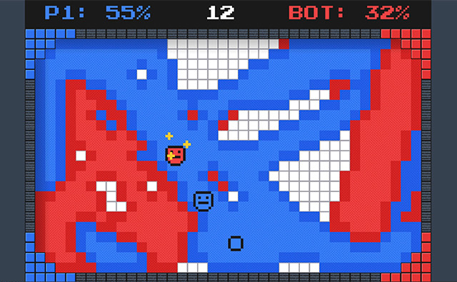 Goon Ball challenges you to control a bouncing ball to paint the floor in your color in a frantic duel against an opponent. This real time multiplayer game combines reflexes and strategy in a 90 second race against the clock. You must hit the magic ball to expand your colored territory while avoiding your rival's attacks. Each collision with the Goon Ball leaves a paint mark on the field, and the more space you cover, the closer you get to victory. Beware of your opponent's strikes that can stun you temporarily! This unique game mechanic turns each match into a frenzied ballet where timing and positioning are crucial. The relentless countdown adds constant pressure that makes every second decisive. Enjoy!
