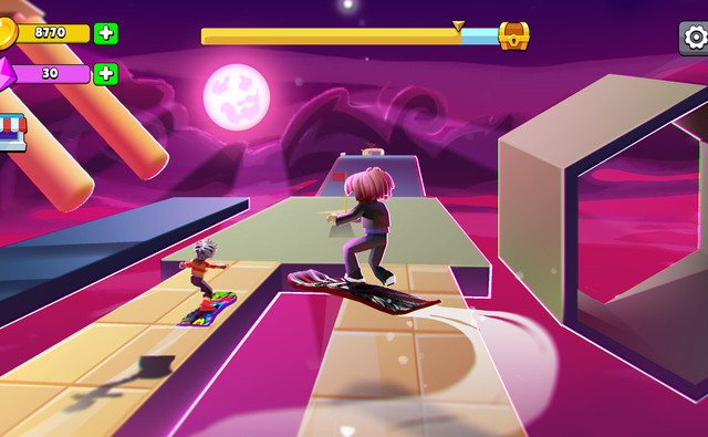 Obby Snowboard Parkour immerses you in a dynamic parkour universe where every jump, platform, and sequence puts your reflexes and precision to the test. Here, there is no race against other players: the real challenge is the course itself and your ability to master it. From the very first moments, you chain slides, jumps, and aerial sections across suspended levels designed to test your timing and sense of anticipation. Obstacles follow one another, demanding focus and composure to stay in control and progress without falling. You learn to read the rhythm of the levels, to balance your impulses, and to use every platform to move ever further. As you progress, the pleasure comes as much from the fluidity of your movements as from the satisfaction of overcoming increasingly complex courses. Unlocking skins and characters allows you to assert your style and personalize your experience, strengthening the feeling of accomplishment with every success. Each attempt is a new opportunity to improve, to push your limits, and to savor the mastery of a demanding and thrilling parkour. It is up to you to take on the challenge and reach the end of the course. Enjoy!