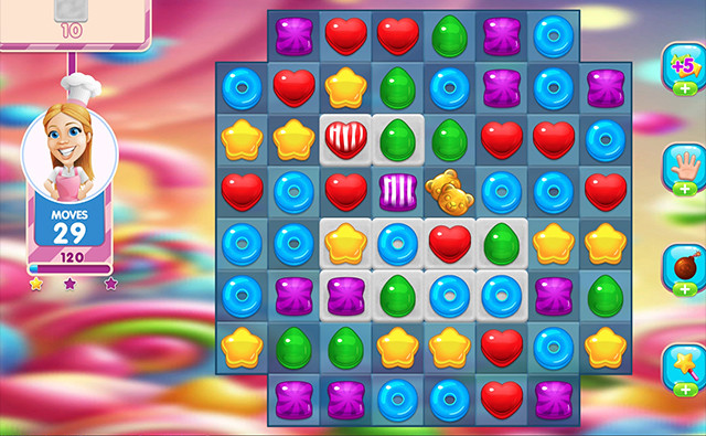 Popping Candies is a matching game where you must align colorful candies to achieve your objectives. Each level offers a unique challenge with a limited number of moves, which requires strategy and planning. Swap adjacent candies to create alignments of three identical elements or more, and watch them disappear in a satisfying cascade. Your mission is to complete varied objectives: reach a precise score, eliminate stubborn obstacles such as chocolate or blockers, or free special tiles. The more candies you align, the more powerful combinations you create to help you progress efficiently. The game offers the possibility to generate special candies with devastating effects. Striped candies sweep an entire row or column, wrapped candies explode over a wide area, and color bombs eliminate all candies of the same color. These tools become essential when facing the most difficult levels. With hundreds of stages to unlock, each session brings new surprises and increasingly inventive board layouts. Use your boosters wisely to overcome the toughest moments and clear every level with skill. Enjoy!