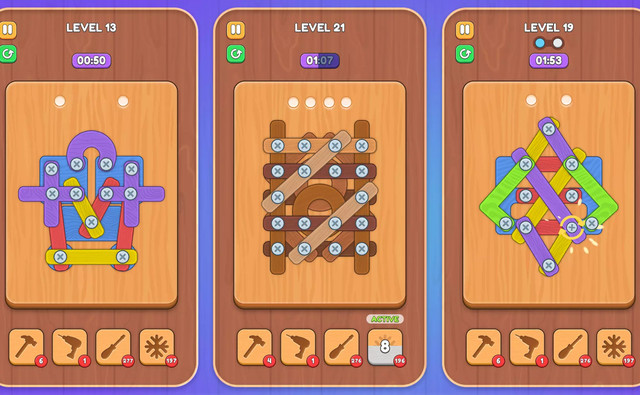 Screw Puzzle - Twist Your Mind is a puzzle game where you must solve challenges by unscrewing various mechanical parts. You will be immediately captivated by its unique mechanics that combine dexterity and logic in a refreshing concept. Progress through increasingly complex levels, where each unscrewed screw reveals new challenges to overcome. The satisfaction of dismantling these three-dimensional elements is unparalleled, while your brain adapts to this innovative way of solving problems. With its polished graphics and intuitive interface, this puzzle game will stimulate your mind while providing hours of entertainment. For puzzle enthusiasts looking for a different experience, Screw Puzzle offers an intellectual challenge that truly breaks new ground. Enjoy!