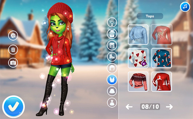 The Grench Couple Holiday Dress Up is a festive dress-up game where you can create unique outfits for the Grinch and his partner. With a variety of Christmas-themed clothes and accessories, you have the opportunity to mix styles to design perfect looks for this iconic duo. Express your creativity by combining fun Santa hats with cozy reindeer sweaters, and much more. This game offers an entertaining experience that captures the holiday spirit while showcasing the Grinch's charm. Whether you are a fan of dress-up games or just love the Grinch's adventures, this game promises to keep you entertained throughout the festive season. Enjoy!