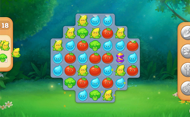 You are visiting your grandmother in her cozy village where she welcomes you with touching stories from her youth. This match-3 game invites you to help her in her vegetable garden while completing missions for the friendly villagers. Match three or more identical vegetables to harvest them and earn precious stars with every completed level. These stars allow you to fulfill the villagers' requests and progress through your grandmother's heartwarming story. Create strategic power-ups by forming special combinations: the rocket that clears a full line, the spinner that destroys targets, the bomb that causes a massive explosion, or the rainbow flower that removes all vegetables of the same color. The colorful graphics and daily bonuses make each game session enjoyable and relaxing. Perfect for short breaks, this game combines clever challenges with a comforting atmosphere that immerses you in the peaceful life of the village. Enjoy!