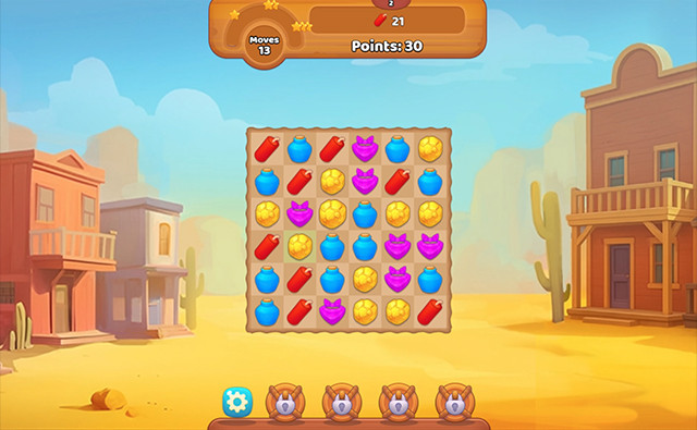 Wild West Match 3 is a match-3 game set in the Far West universe, where you help inhabitants organize the items essential to their daily survival. Its appeal rests on a strong western atmosphere, varied objectives and steady progression that put your observation and logic to the test. You travel through settings of saloons, dusty streets and isolated villages, while manipulating iconic elements such as bags of money, sticks of dynamite or cowboy hats. Each level offers a specific challenge to accomplish, which constantly renews the experience and pushes you to consider the best way to reach the set goals without wasting your opportunities. Throughout the game, you must create alignments of identical items in order to meet the conditions specific to each stage, while managing a limited number of moves. The difficulty increases progressively, introducing situations that require anticipation and strategy, without ever losing sight of the accessibility inherent to the match-3 genre. The visual and sound universe reinforces immersion and gives the impression of taking part in the daily life of endearing characters. Whether you are aiming to get the maximum number of stars or simply to progress at a relaxed pace, the game accompanies you in a coherent and stimulating adventure, designed to be as enjoyable as rewarding over time. Enjoy!